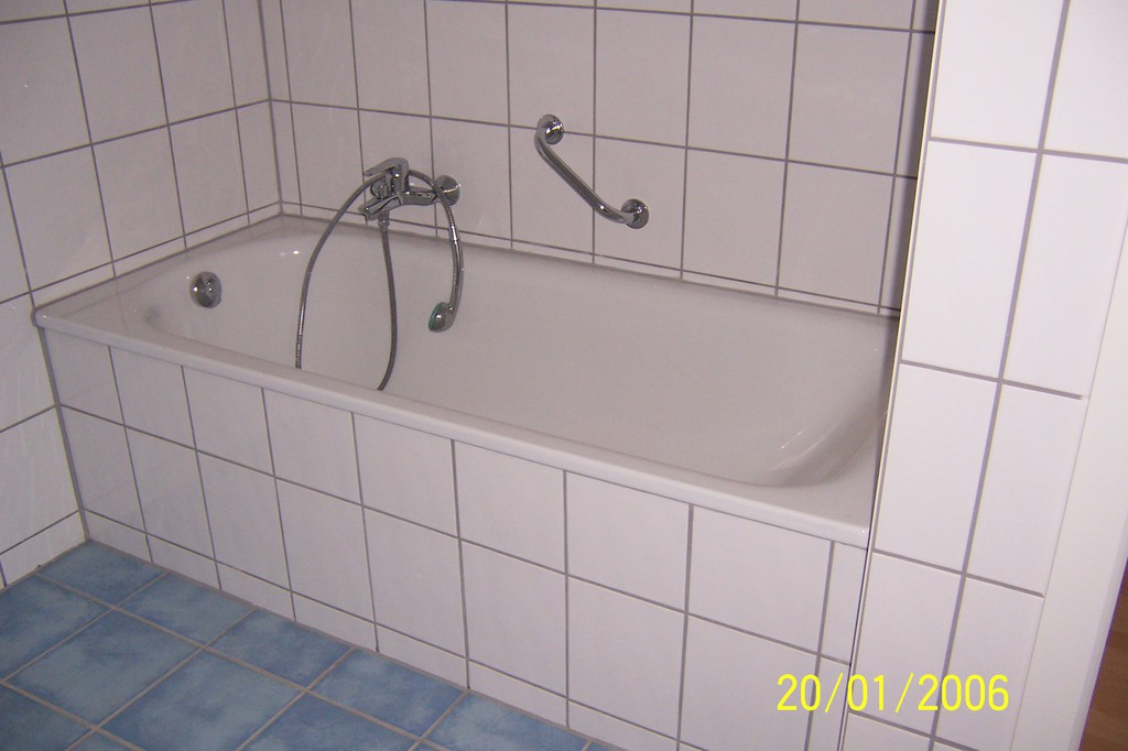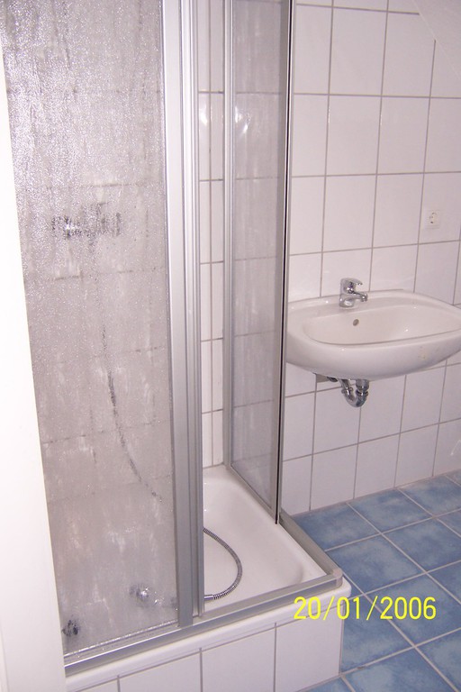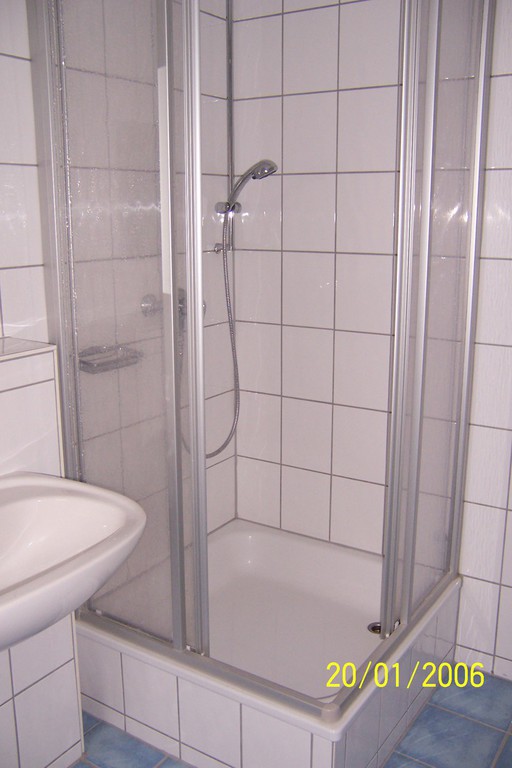 In jedem Stockwerk befindet sich ein eigenes Badezimmer mit WC und Dusche, im unteren Stockwerk zusätzlich mit Badewanne. Die komplette Wohnung ist mit Laminatboden und in den Badezimmern mit Fliesen ausgetattet.