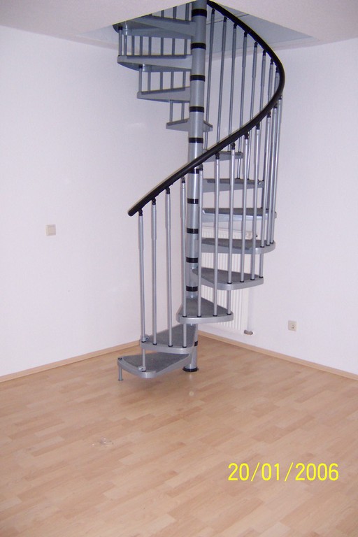 Die beiden Stockwerke werden durch eine Raumsparende Wendeltreppe verbunden. Die großzügigen schön aufgeteilten Zimmer eignen sich sowol für Familien als auch als Studenten WG.