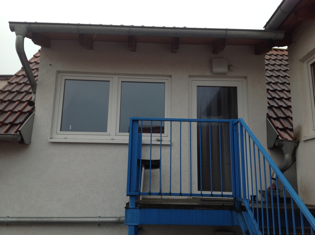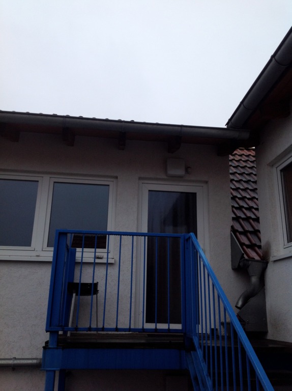 Die Wohnung ist durch den gemeinschaftlich genutzen Eingangsbereich und Innenhof durch eine großzügige Außentreppe erreichbar.
